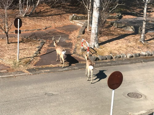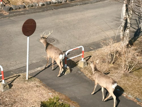 近所に5~6頭でファミリーを形成し、住みついている鹿一家がいて